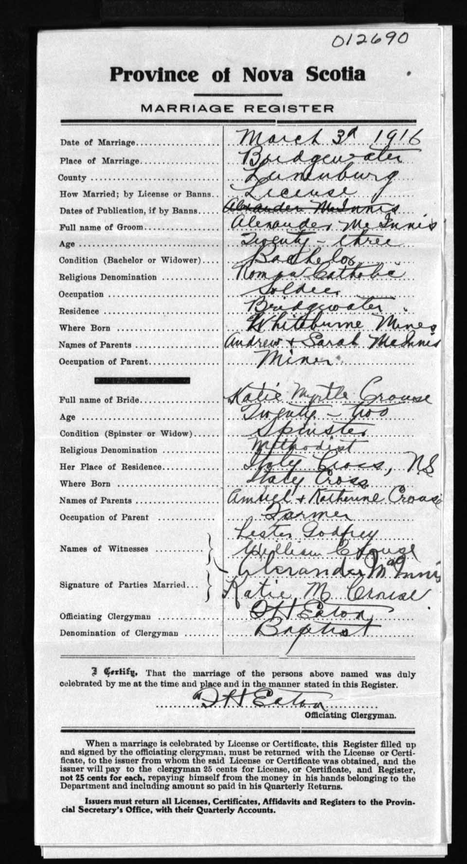 Registration: Year: 1916 number: 12690