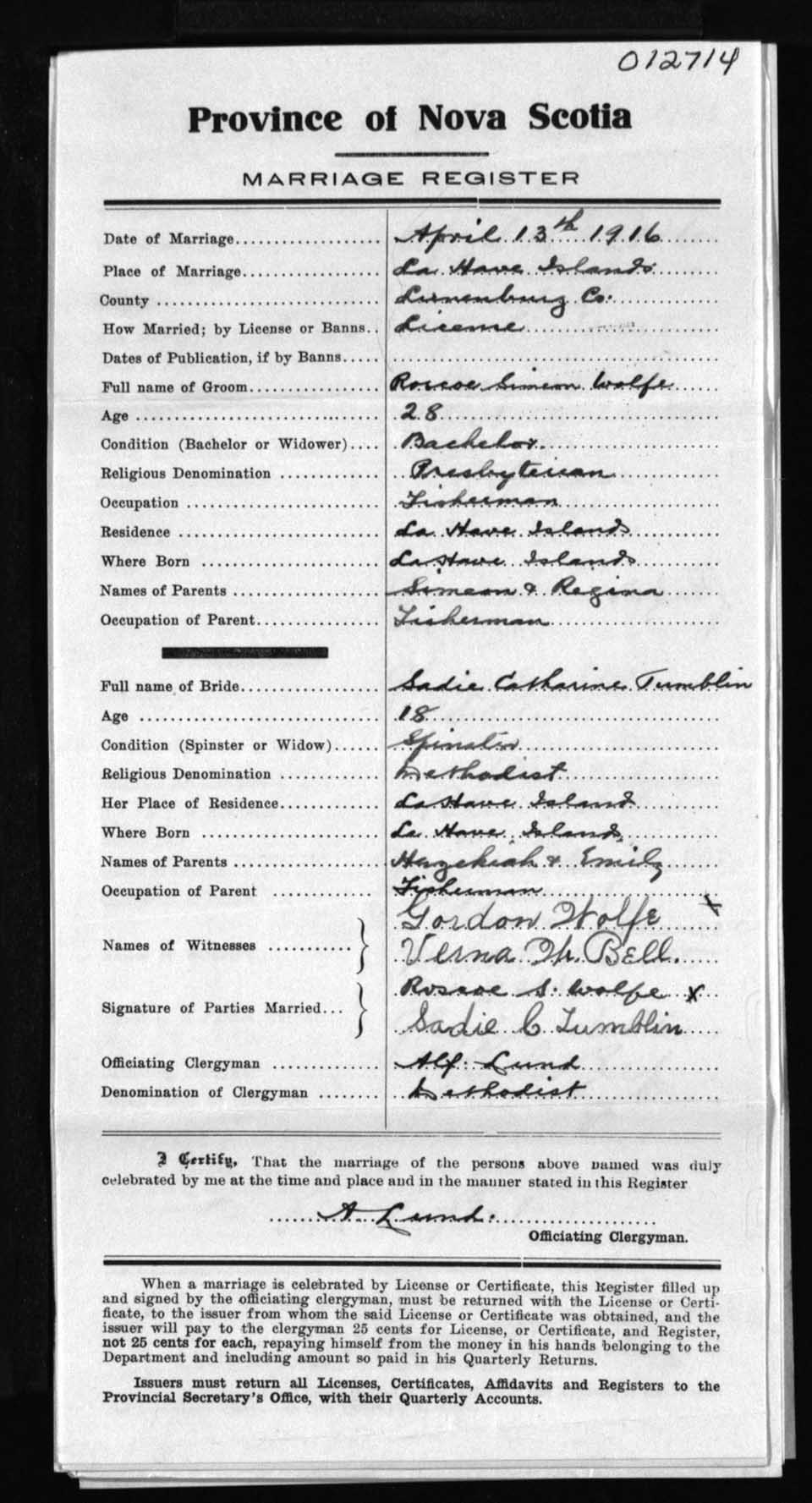 Registration: Year: 1916 number: 12714