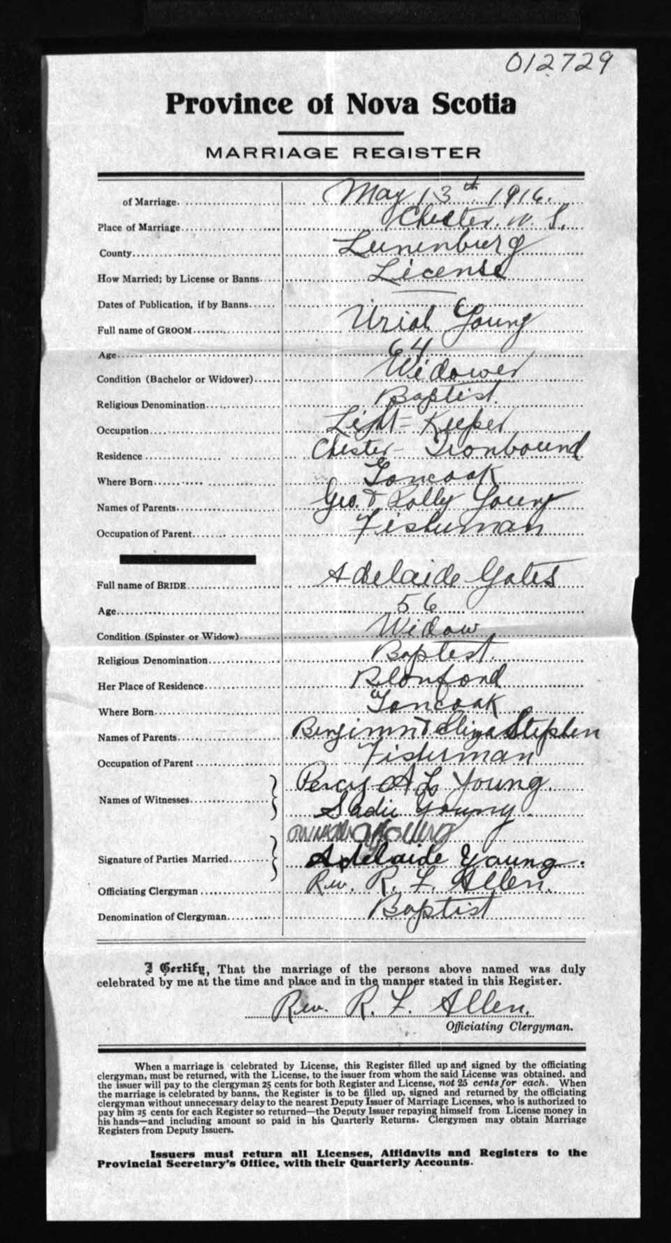 Registration: Year: 1916 number: 12729