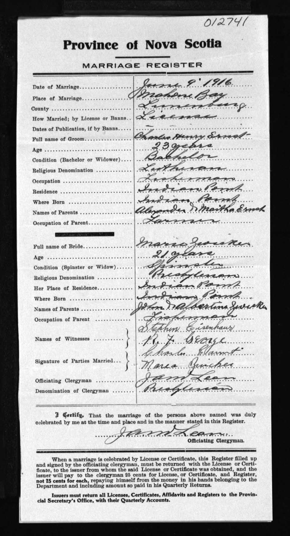 Registration: Year: 1916 number: 12741