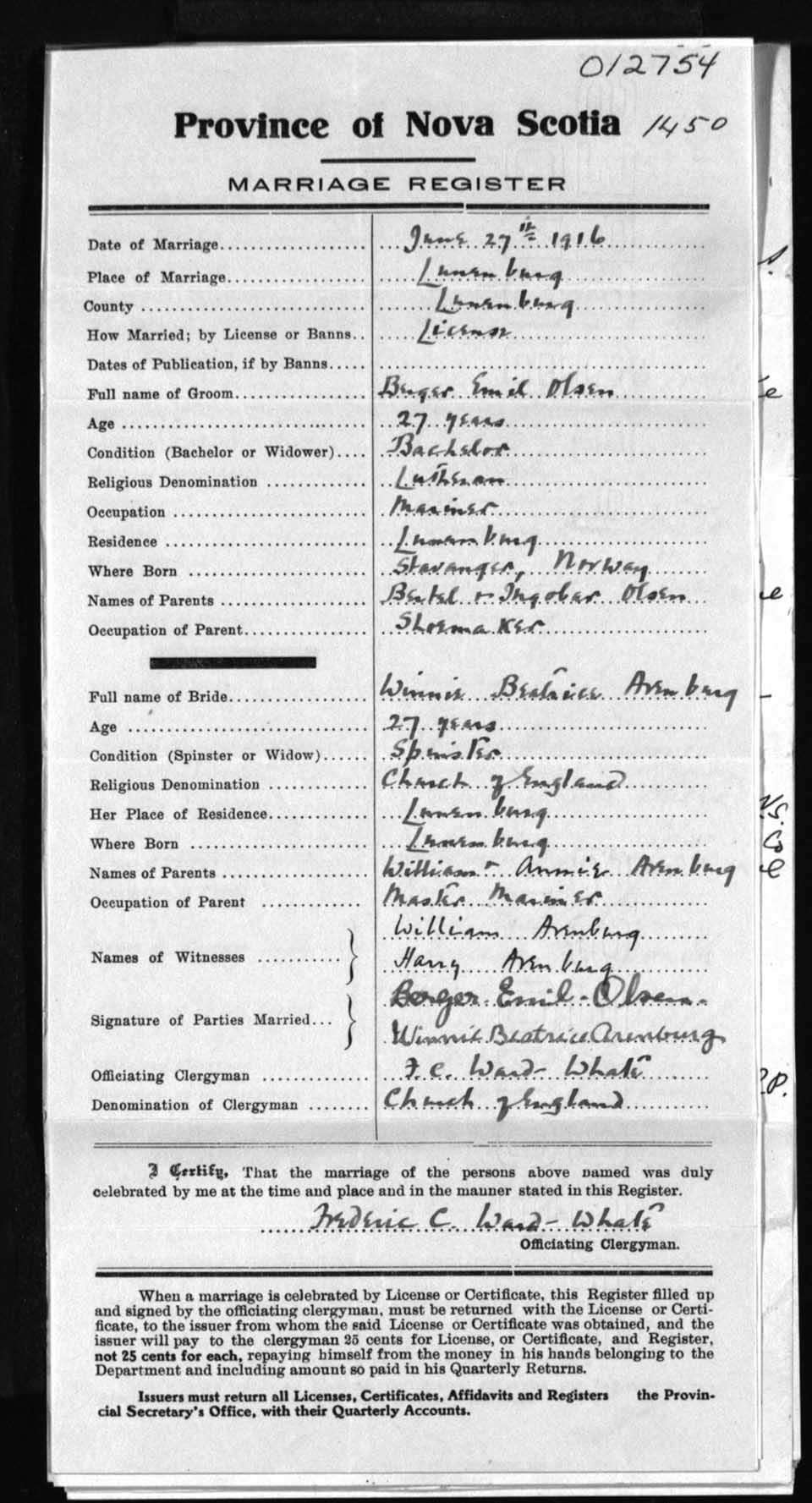 Registration: Year: 1916 number: 12754