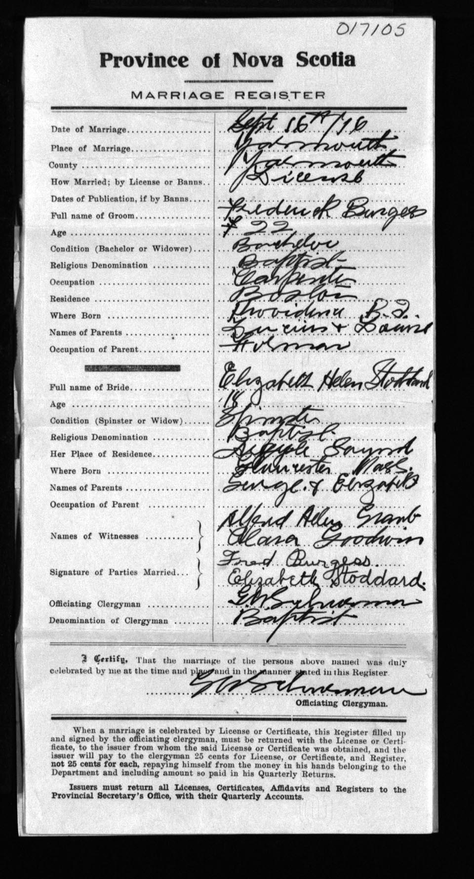 Registration: Year: 1916 number: 17105