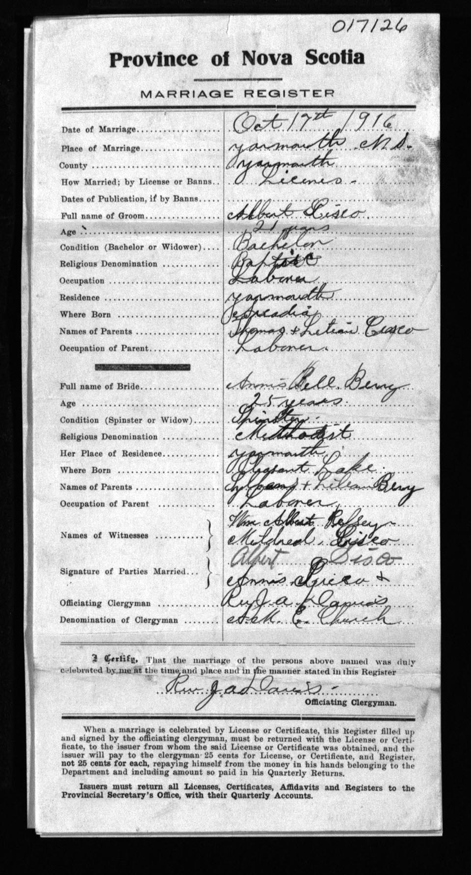 Registration: Year: 1916 number: 17126