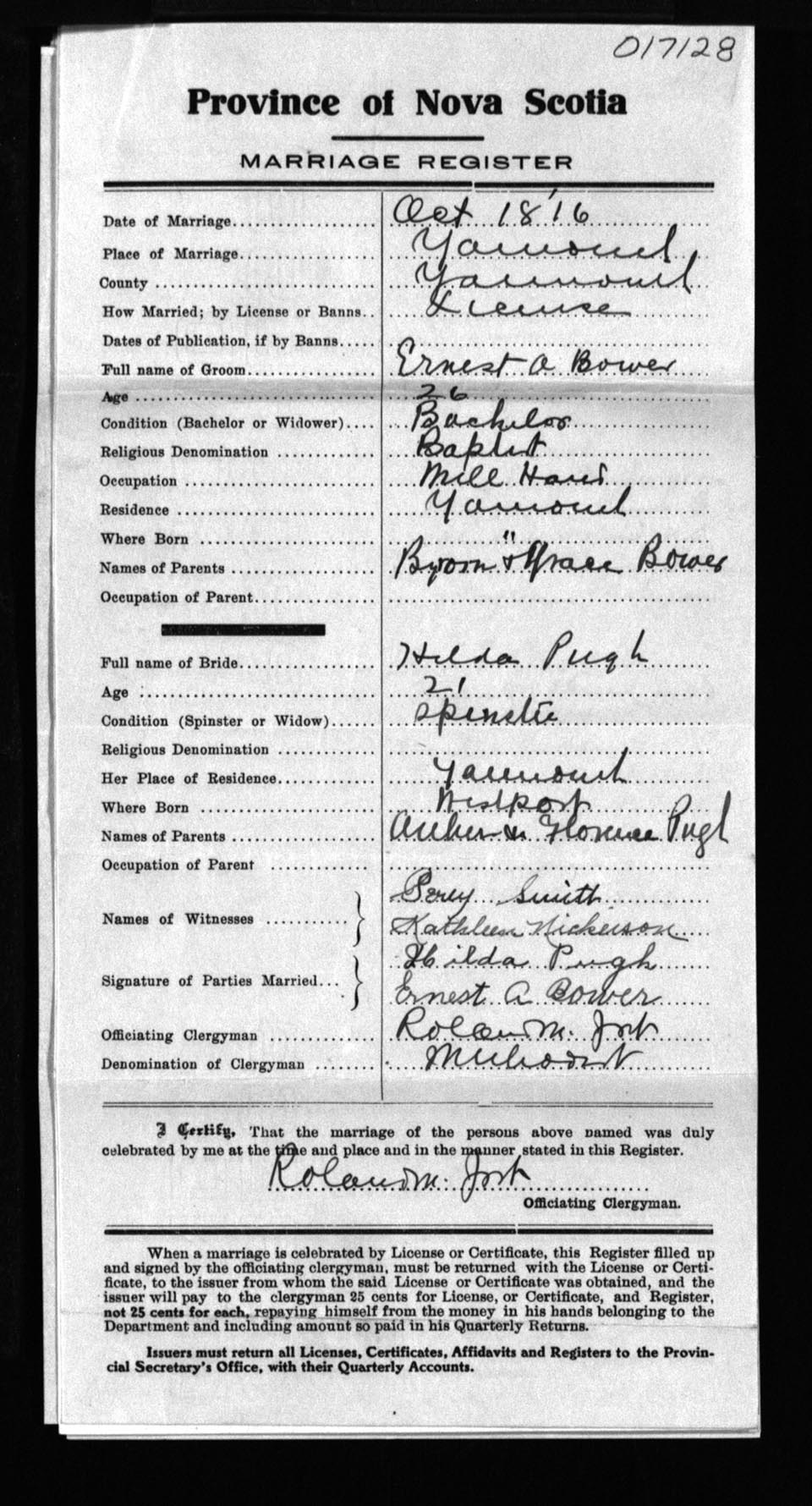 Registration: Year: 1916 number: 17128