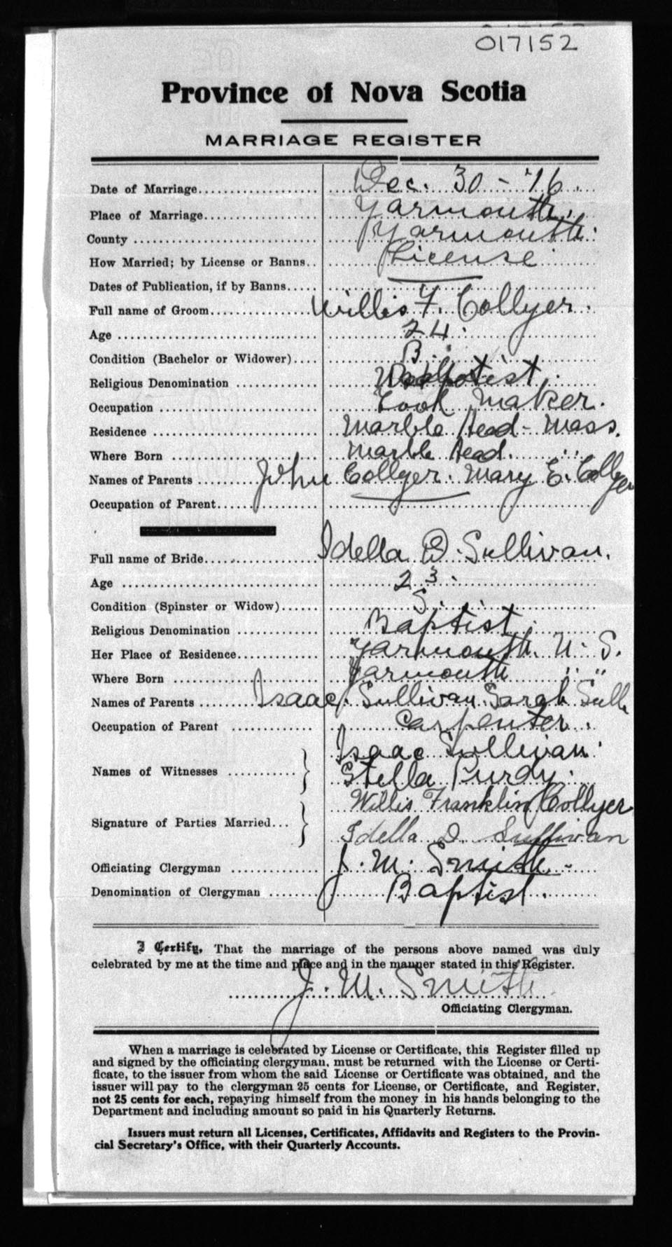 Registration: Year: 1916 number: 17152