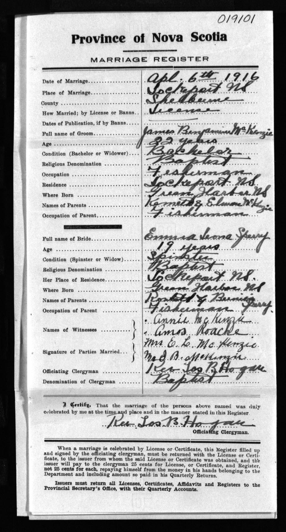 Registration: Year: 1916 number: 19101