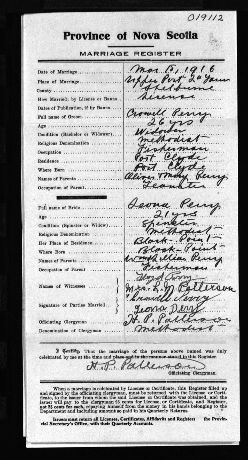 Registration: Year: 1916 number: 19112