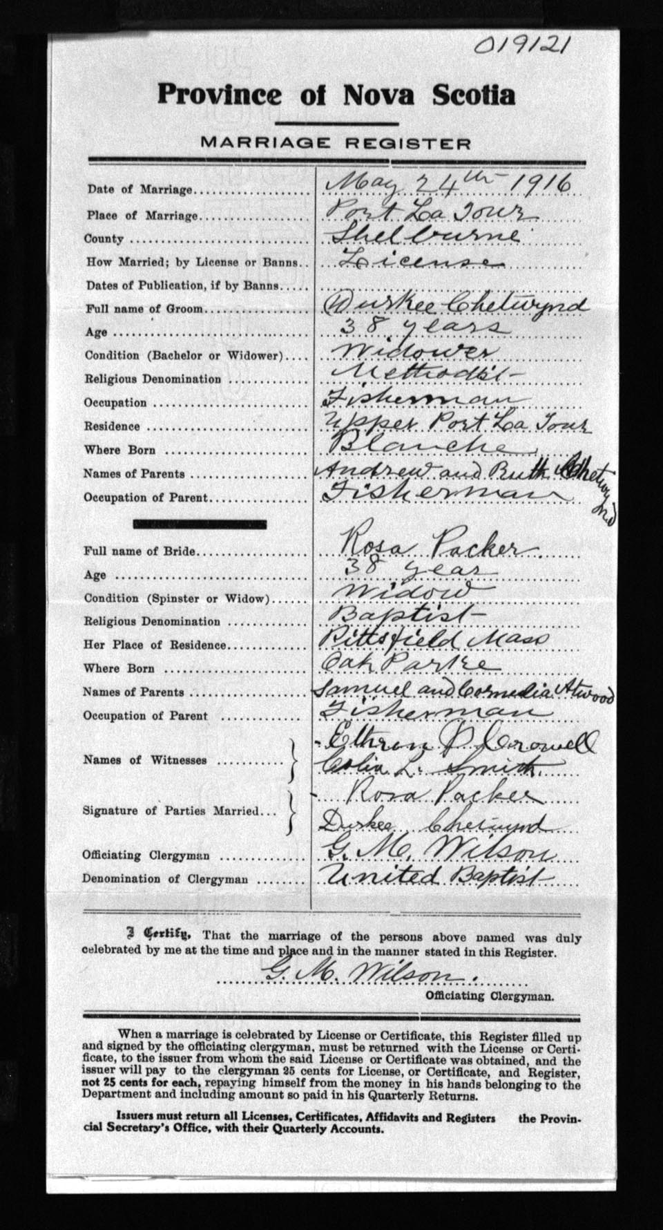 Registration: Year: 1916 number: 19121