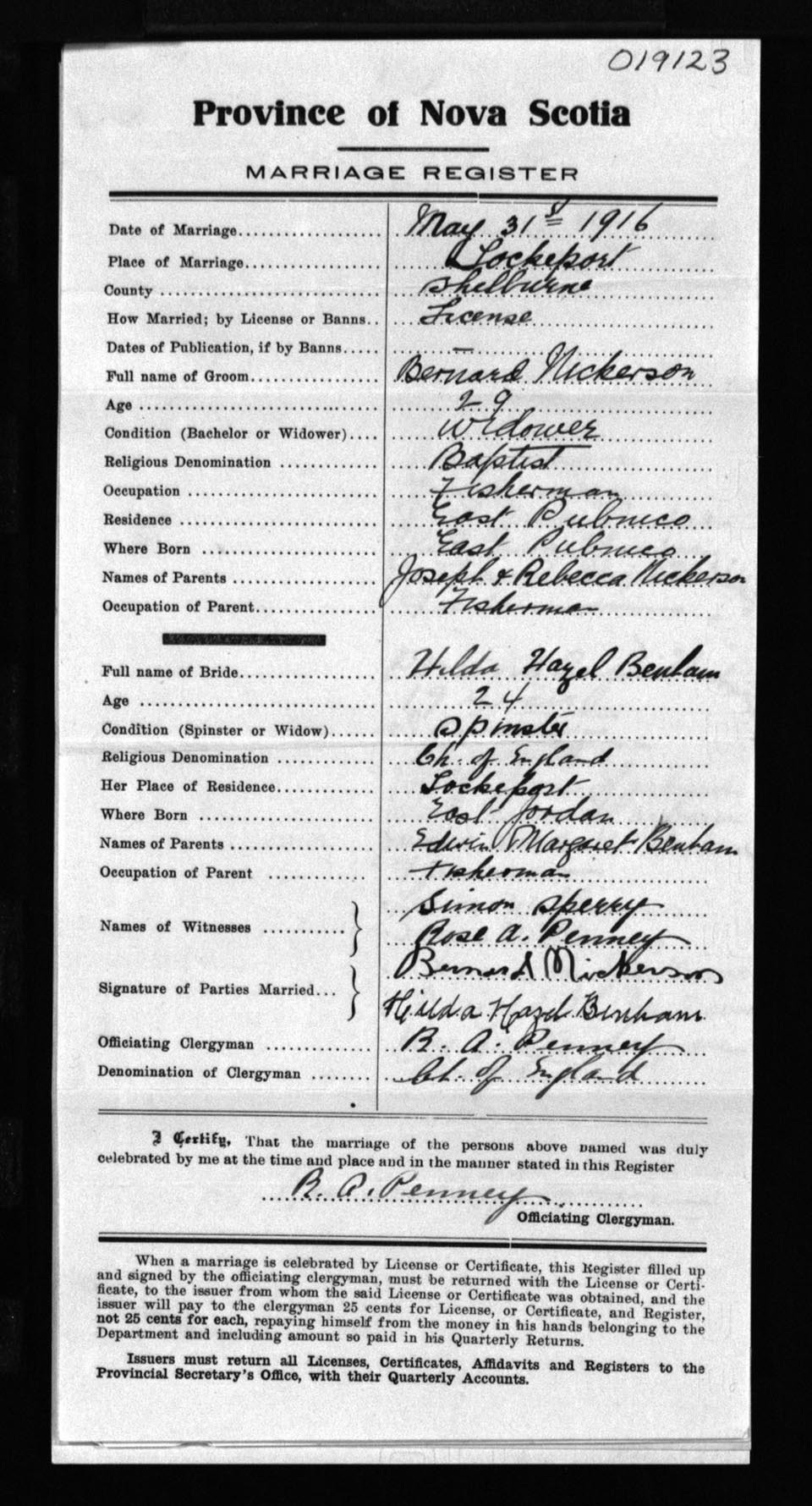 Registration: Year: 1916 number: 19123