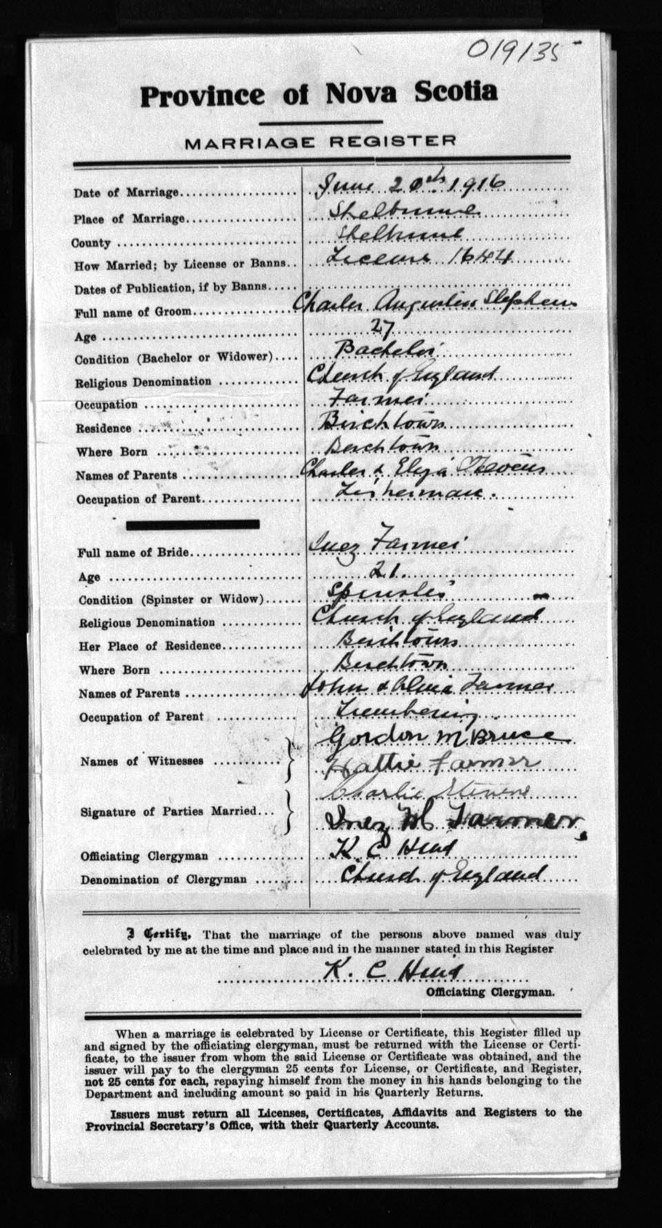 Registration: Year: 1916 number: 19135
