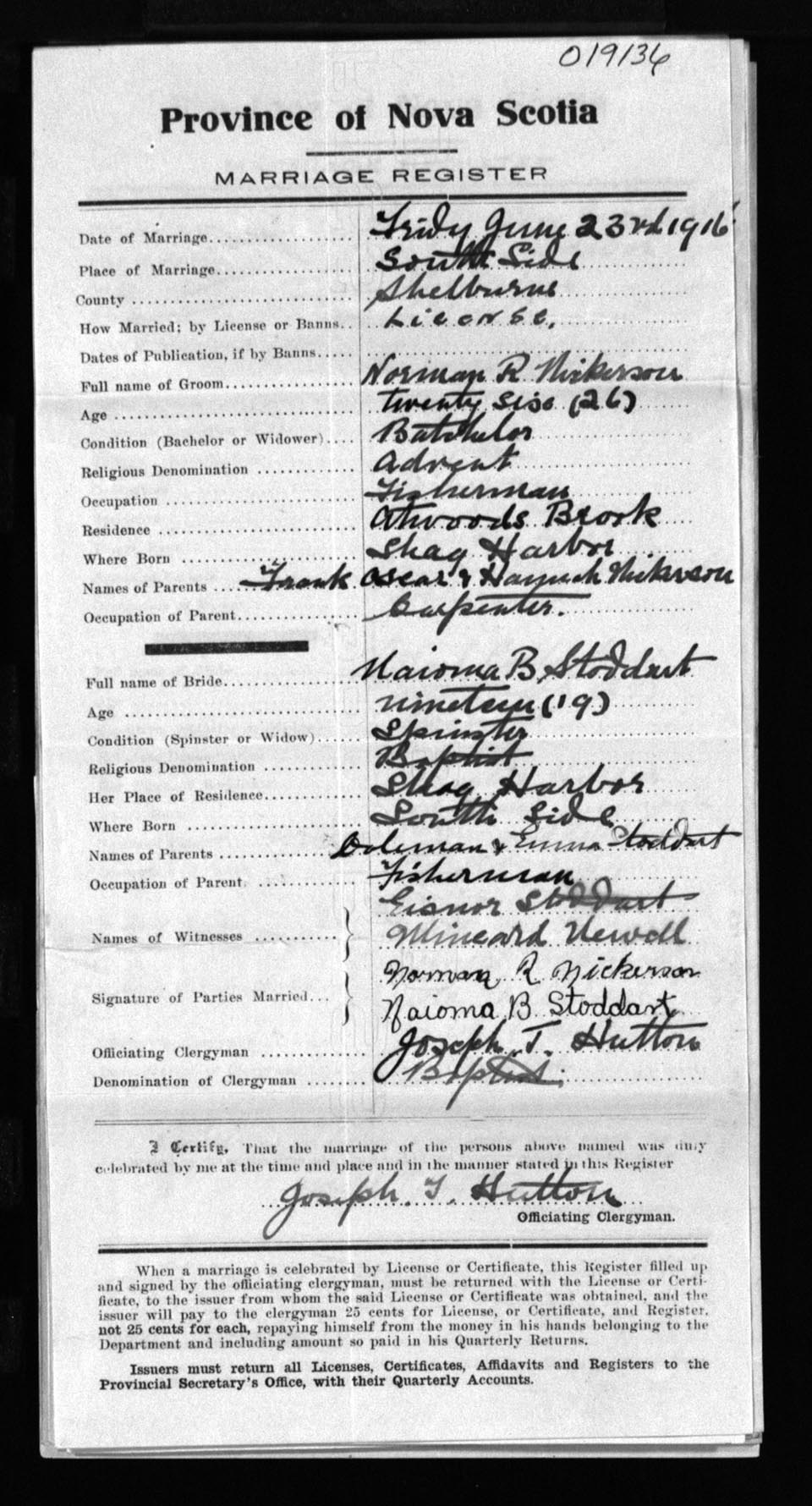 Registration: Year: 1916 number: 19136