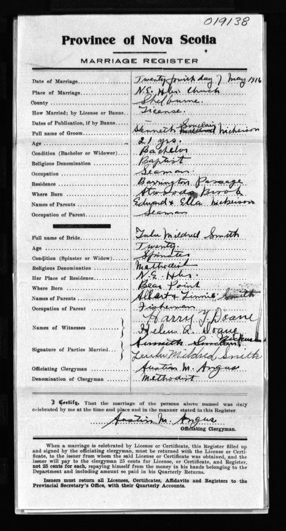 Registration: Year: 1916 number: 19138