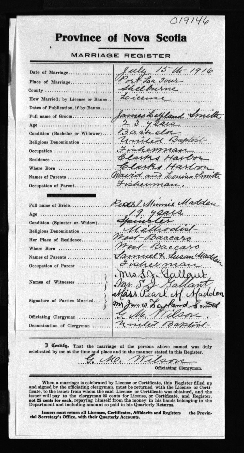 Registration: Year: 1916 number: 19146