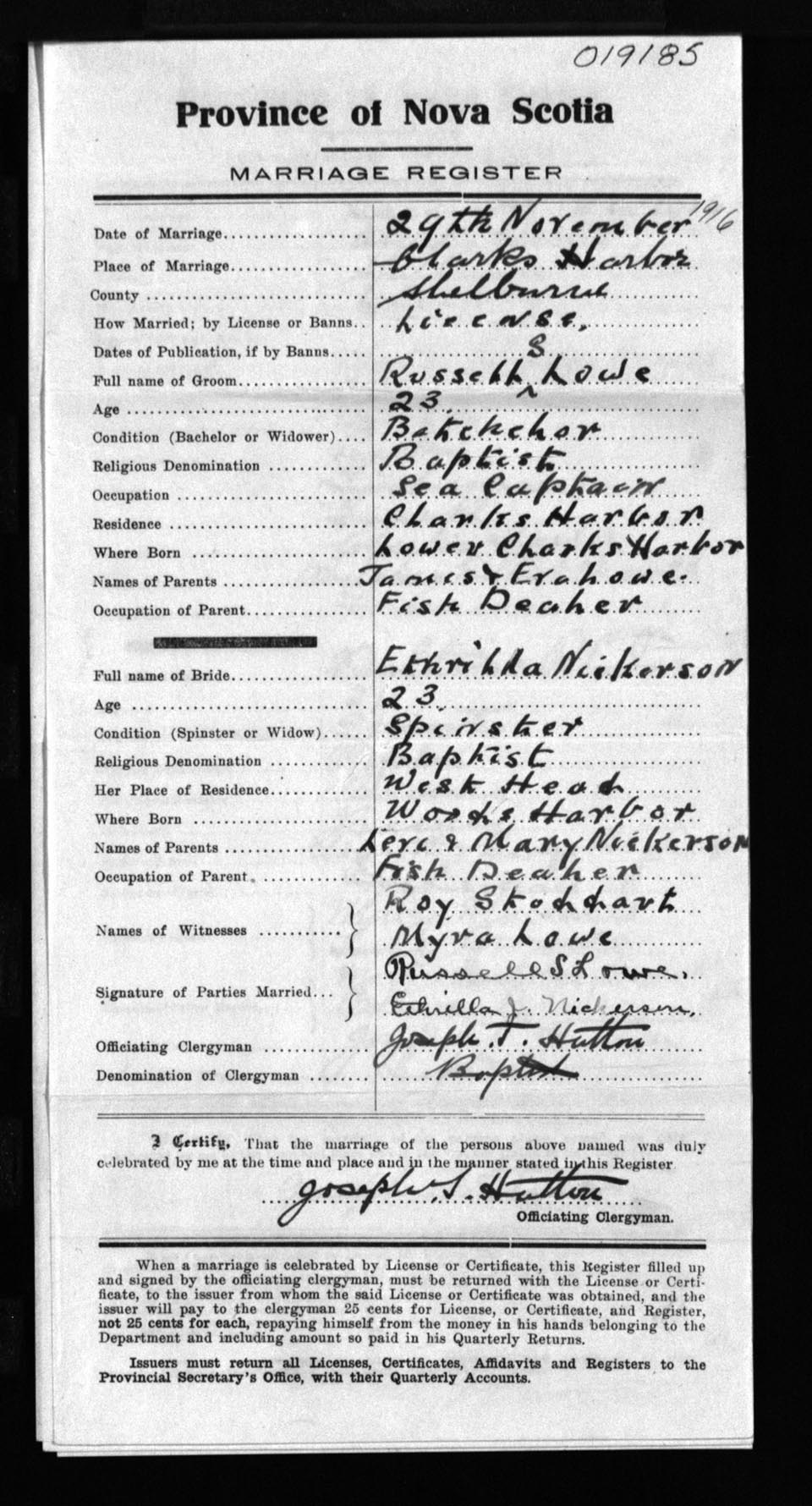 Registration: Year: 1916 number: 19185