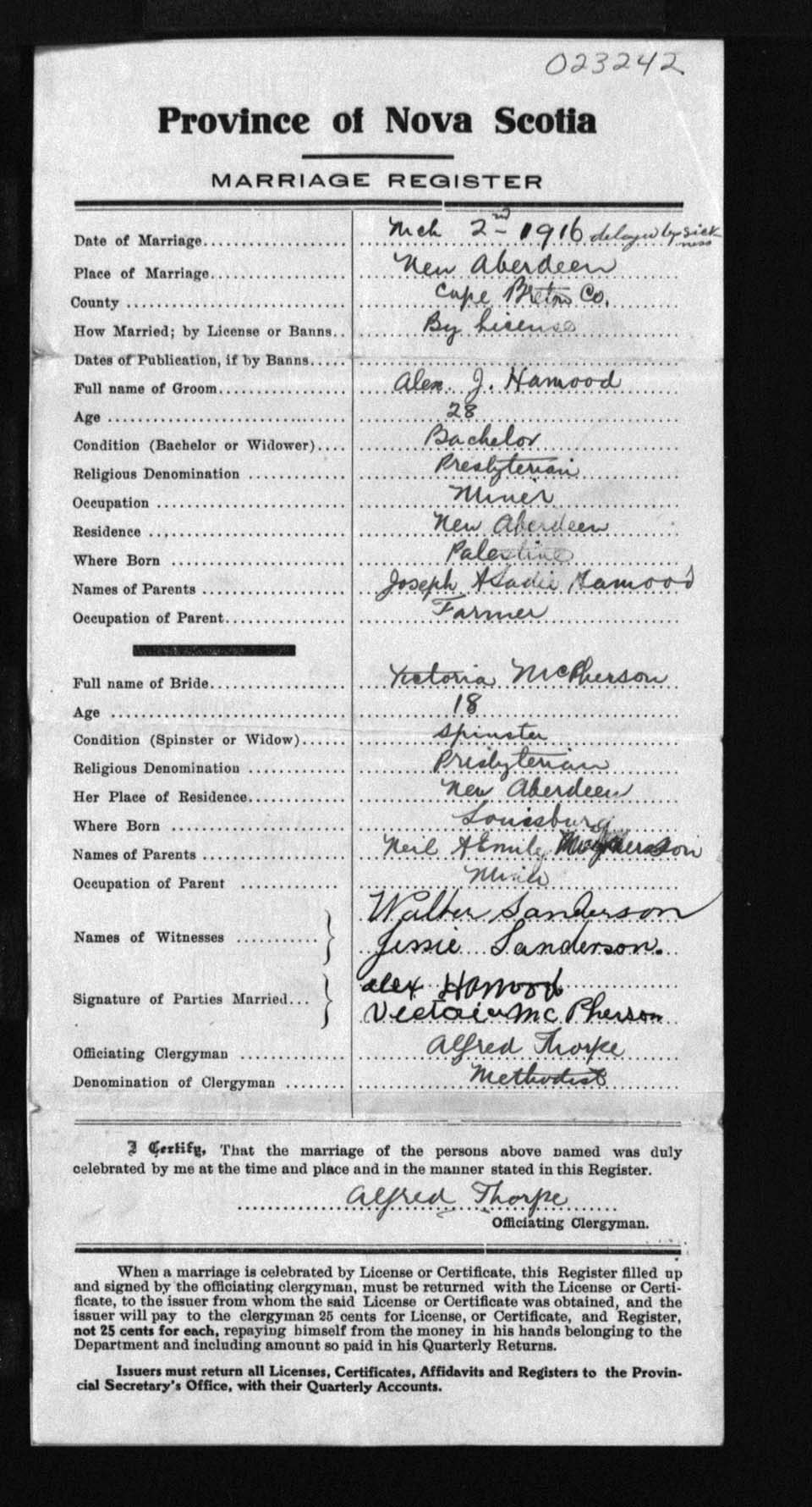 Registration: Year: 1916 number: 23242