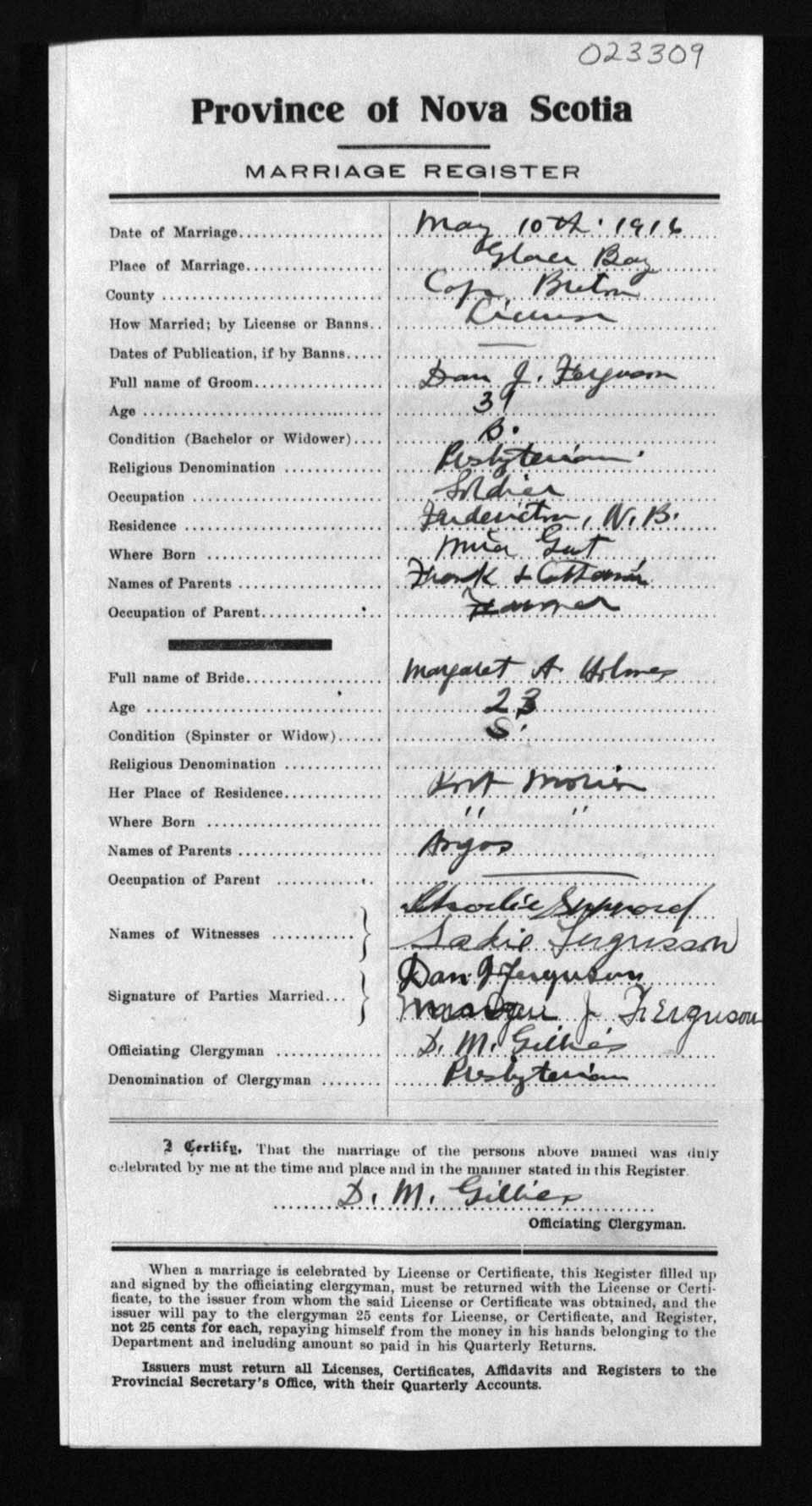 Registration: Year: 1916 number: 23309