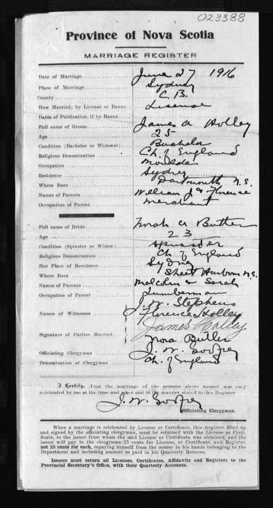 Registration: Year: 1916 number: 23388