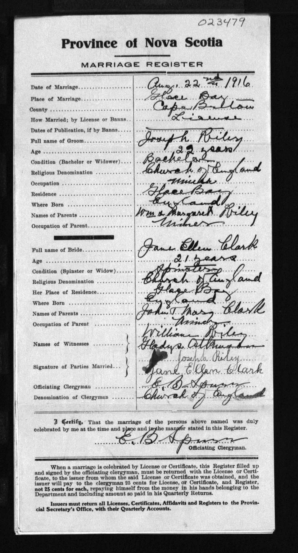Registration: Year: 1916 number: 23479