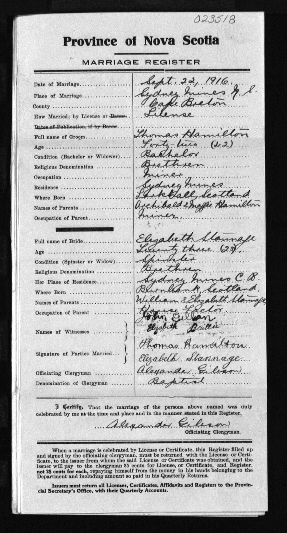 Registration: Year: 1916 number: 23518