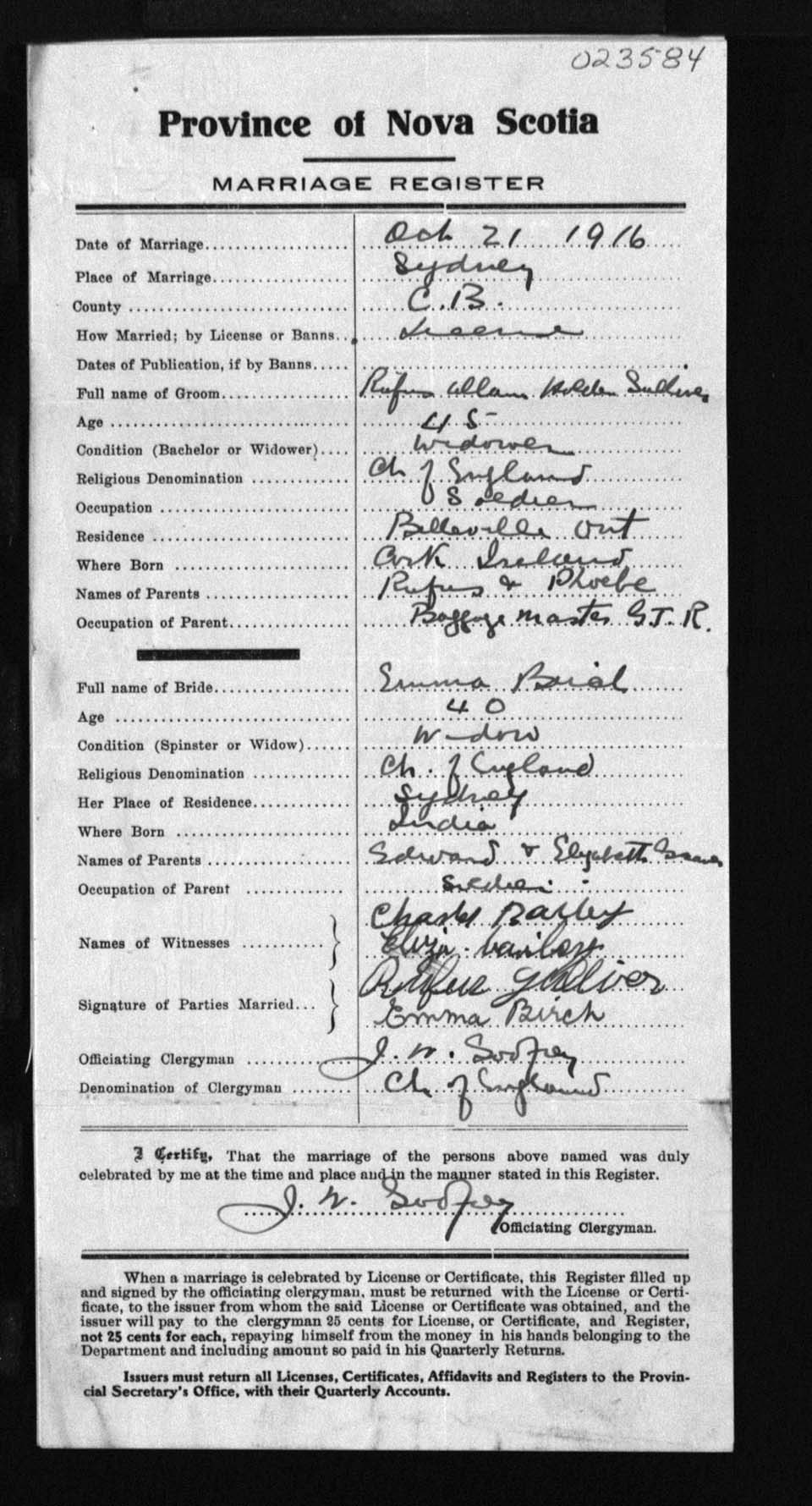 Registration: Year: 1916 number: 23584