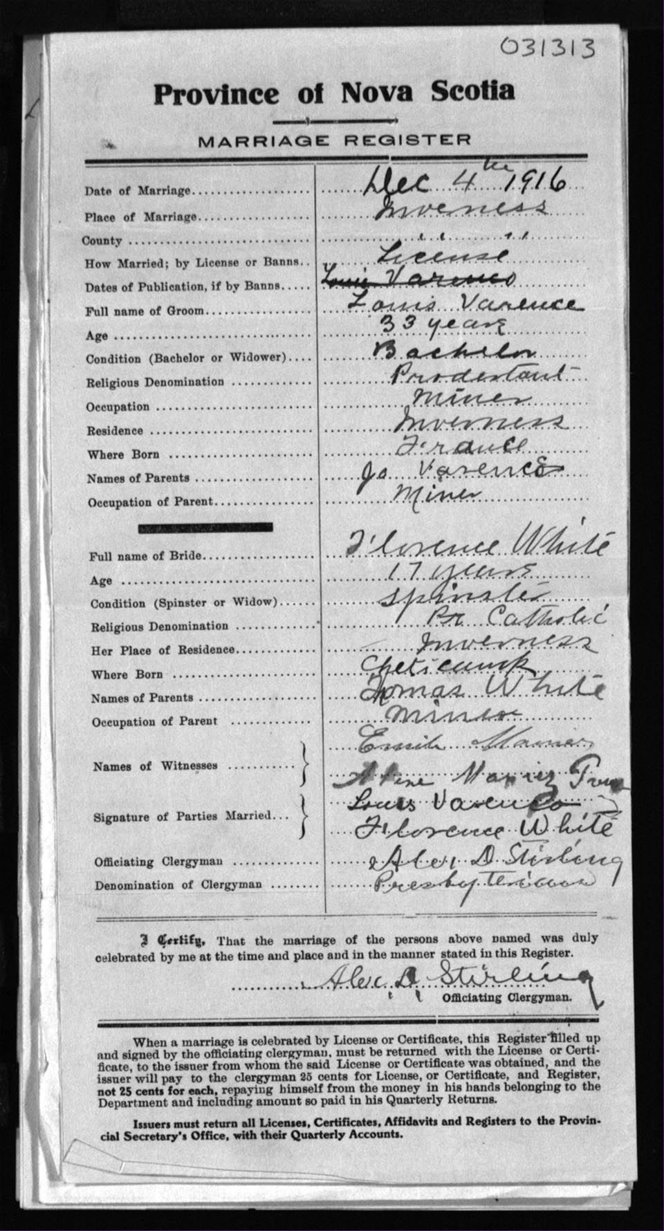 Registration: Year: 1916 number: 31313