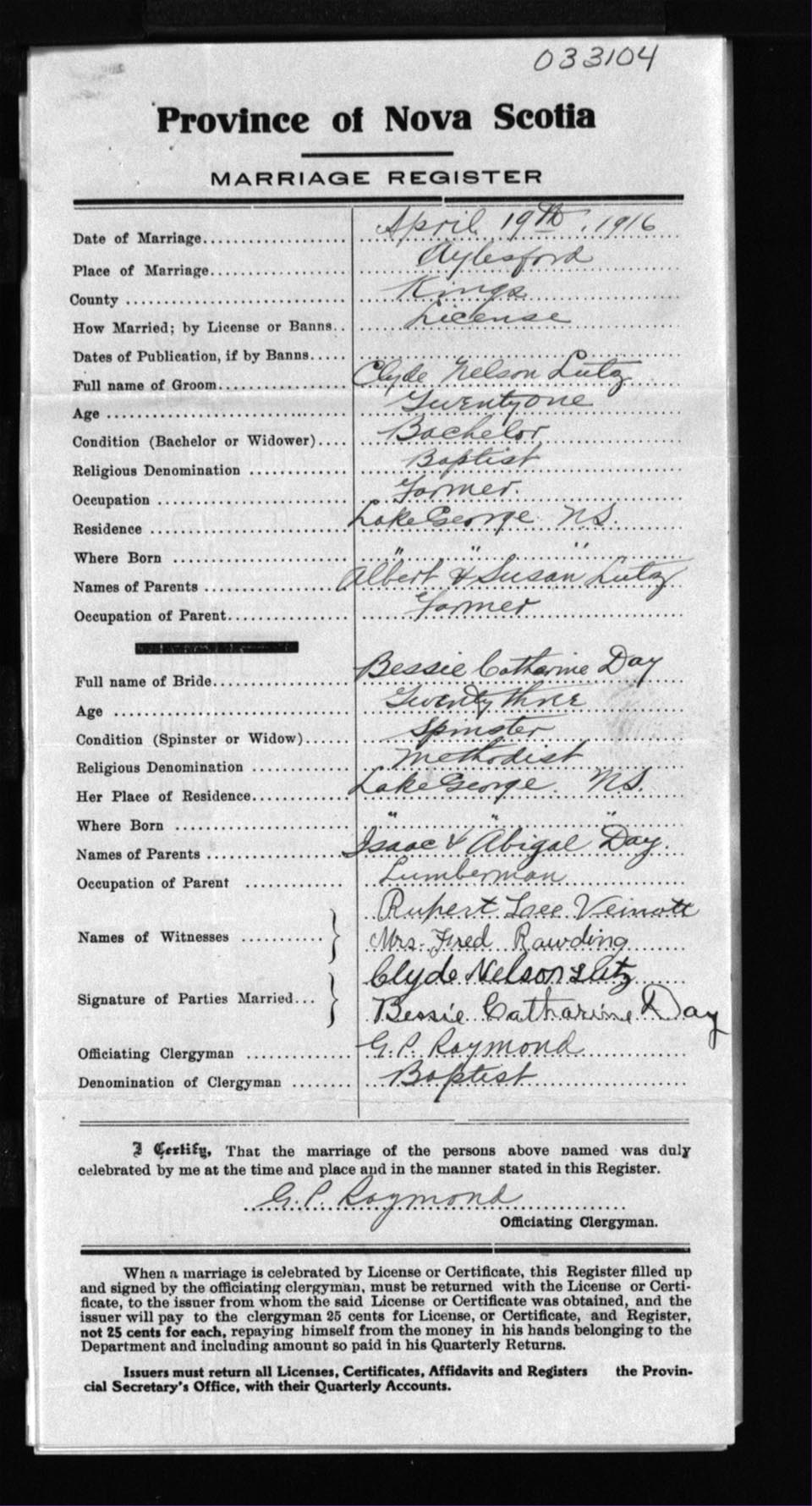 Registration: Year: 1916 number: 33104
