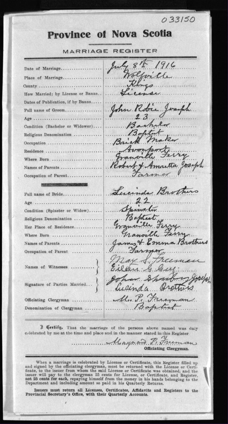 Registration: Year: 1916 number: 33150