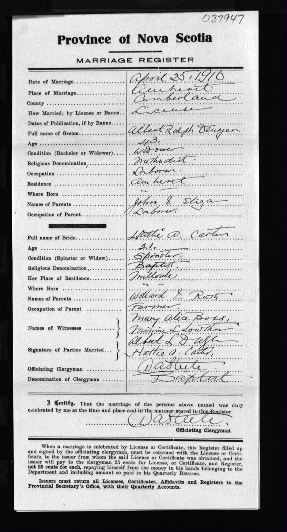Registration: Year: 1916 number: 37947