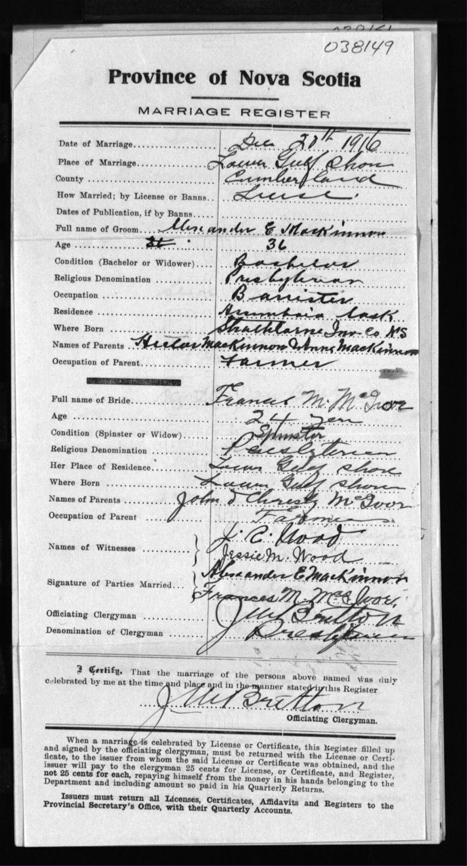 Registration: Year: 1916 number: 38149