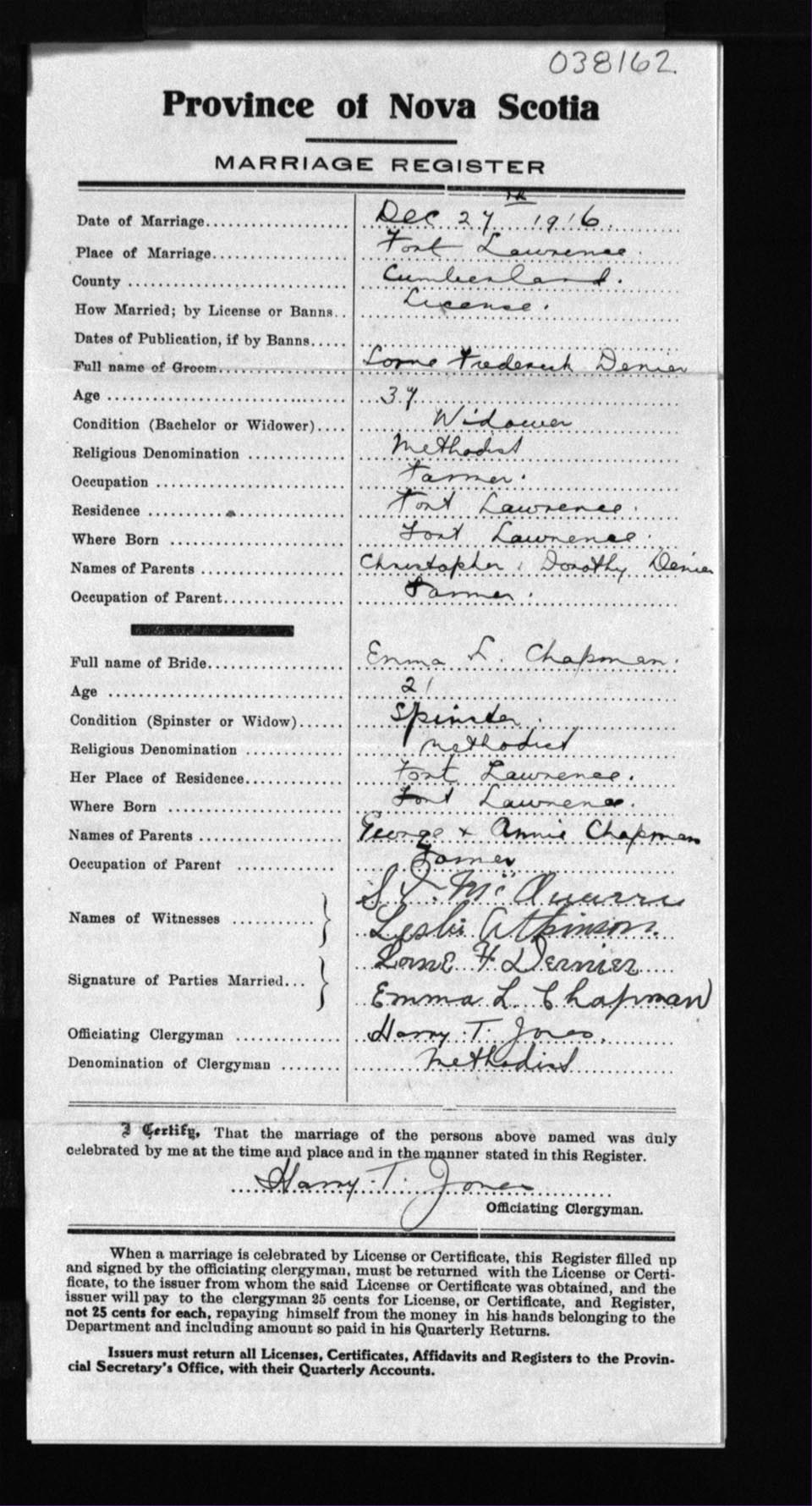 Registration: Year: 1916 number: 38162