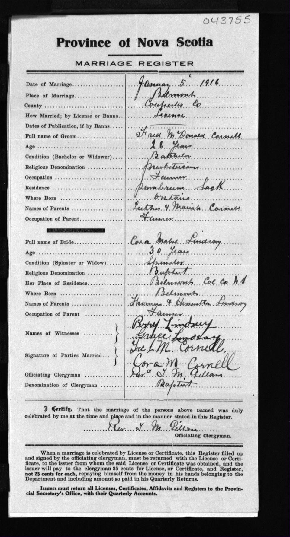 Registration: Year: 1916 number: 43755