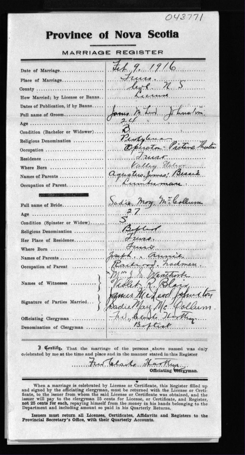 Registration: Year: 1916 number: 43771