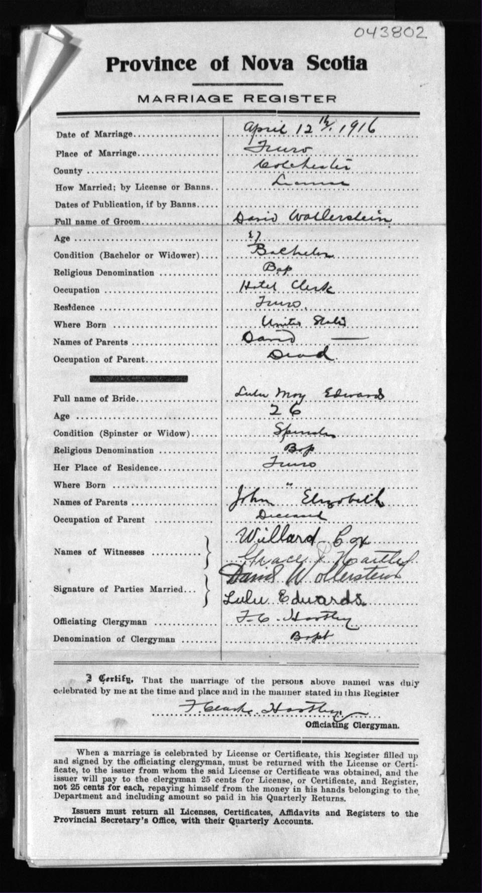 Registration: Year: 1916 number: 43802