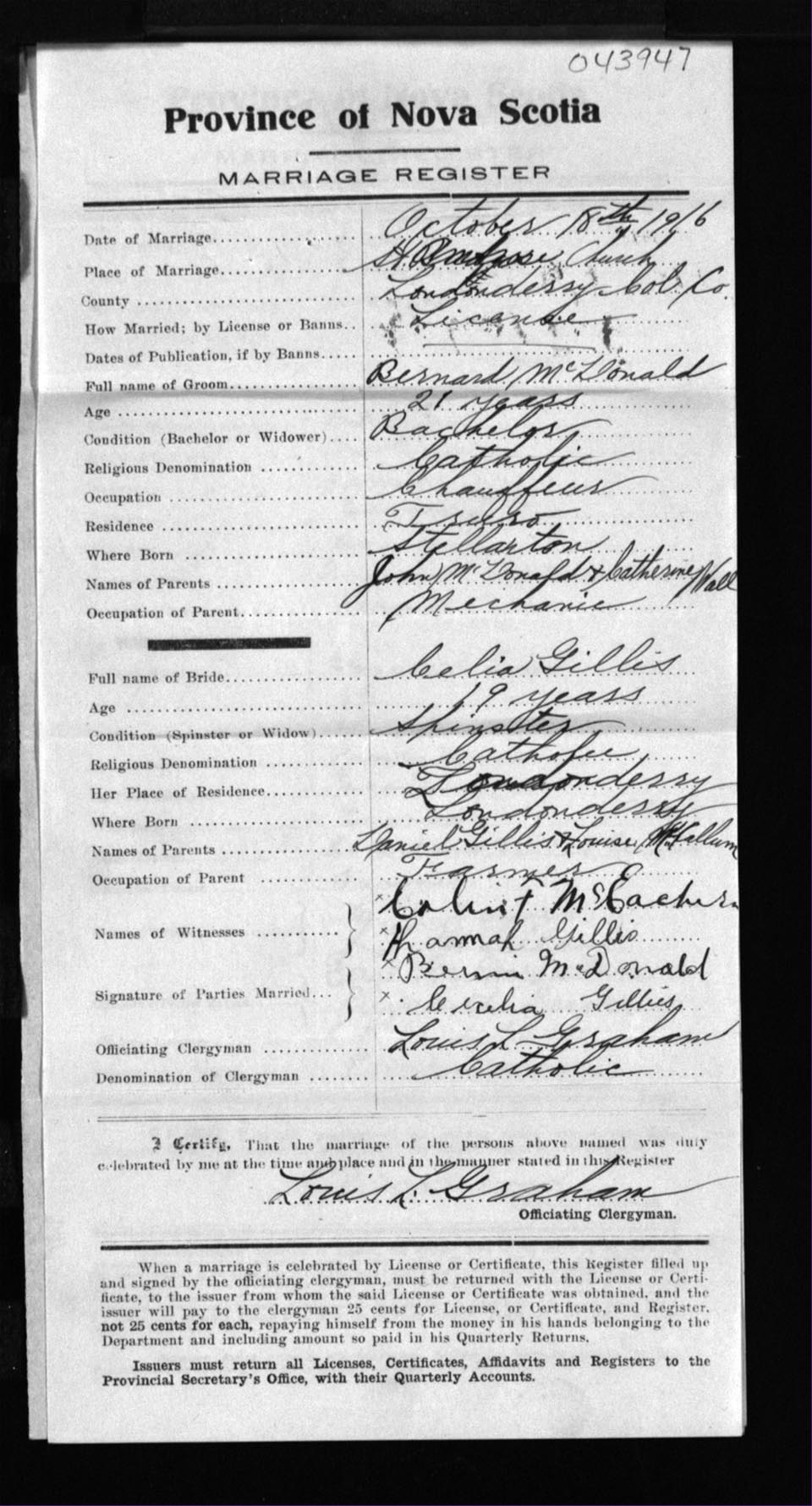Registration: Year: 1916 number: 43947