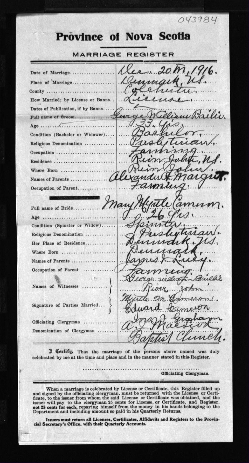 Registration: Year: 1916 number: 43984