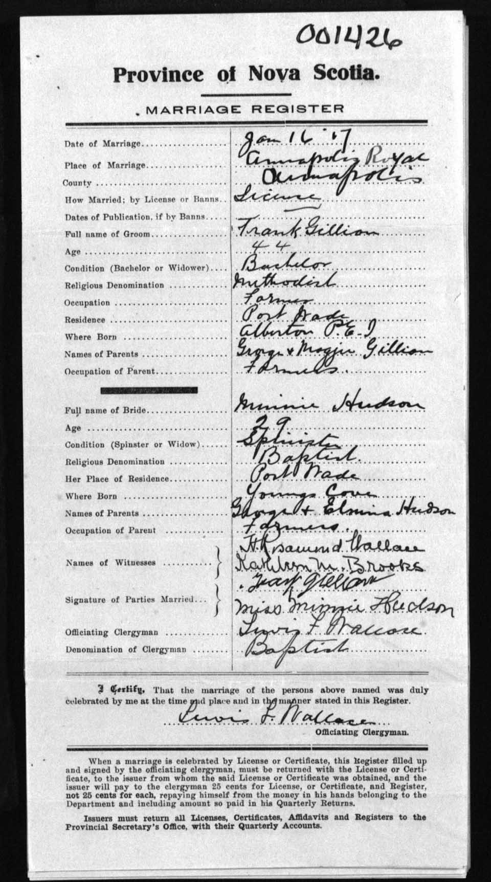Registration: Year: 1917 number: 1426