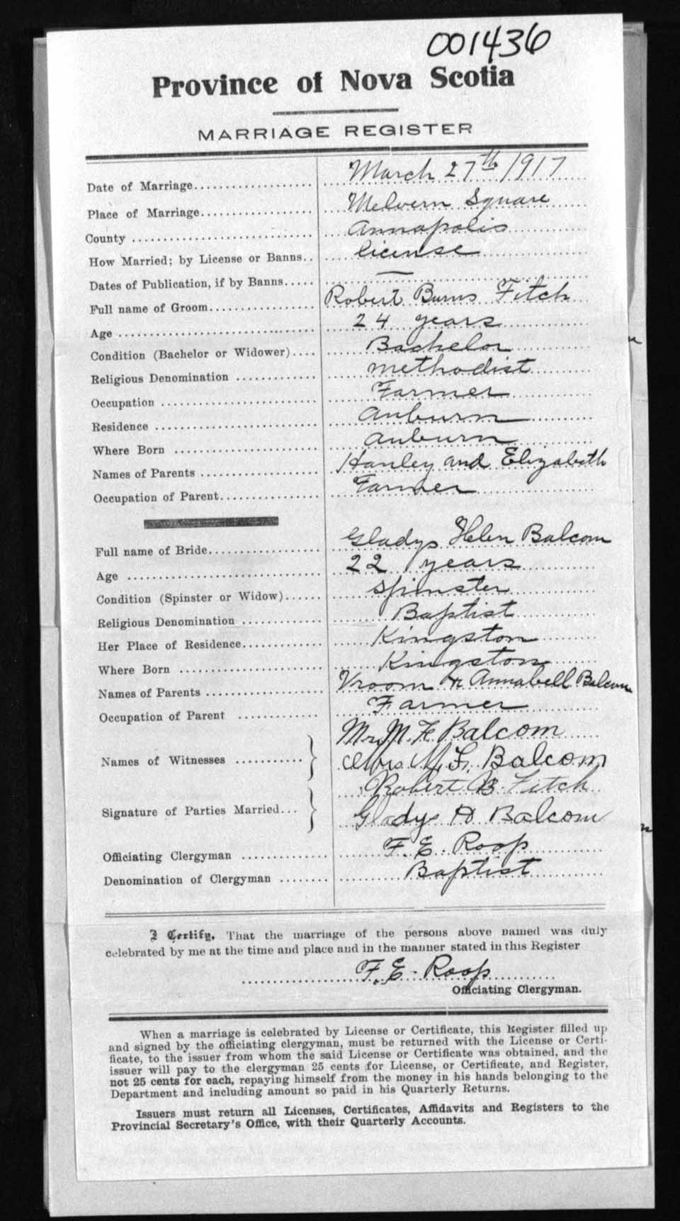 Registration: Year: 1917 number: 1436