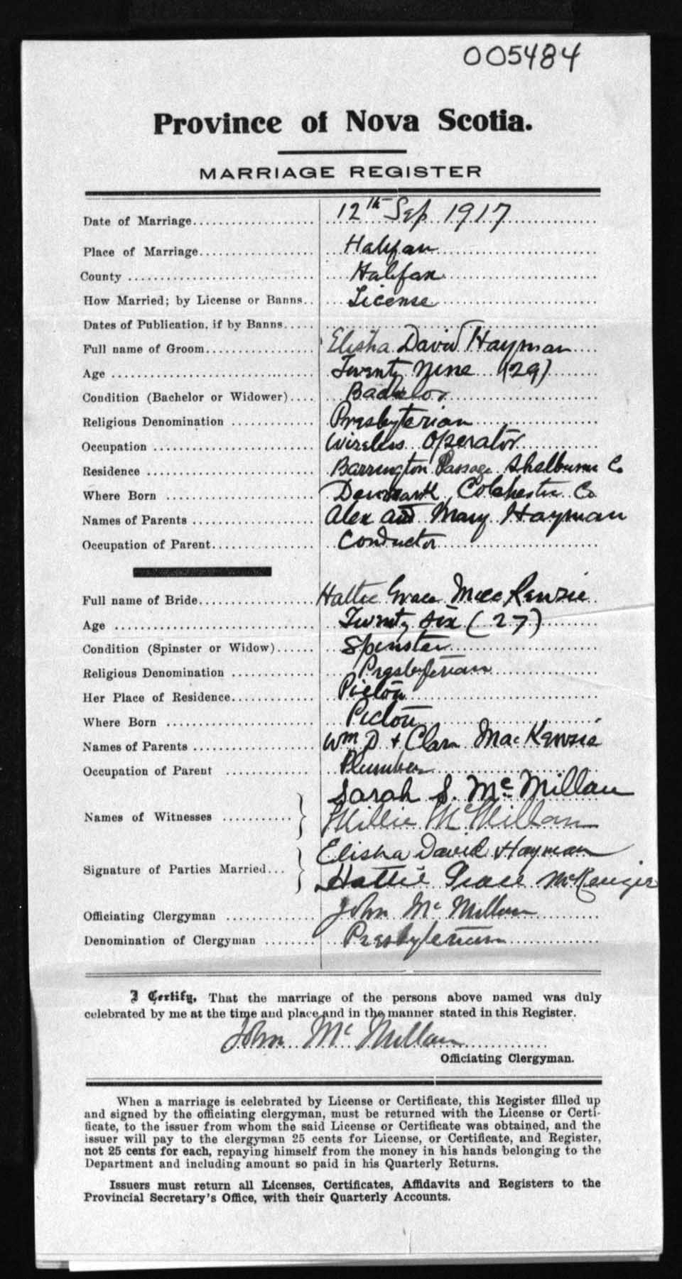 Registration: Year: 1917 number: 5484