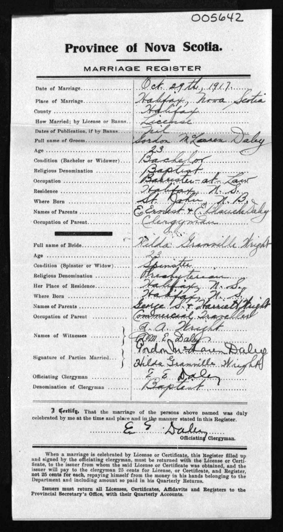 Registration: Year: 1917 number: 5642