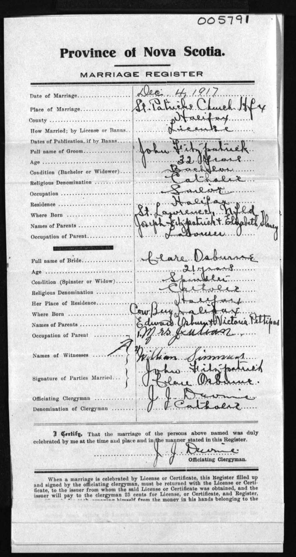 Registration: Year: 1917 number: 5791