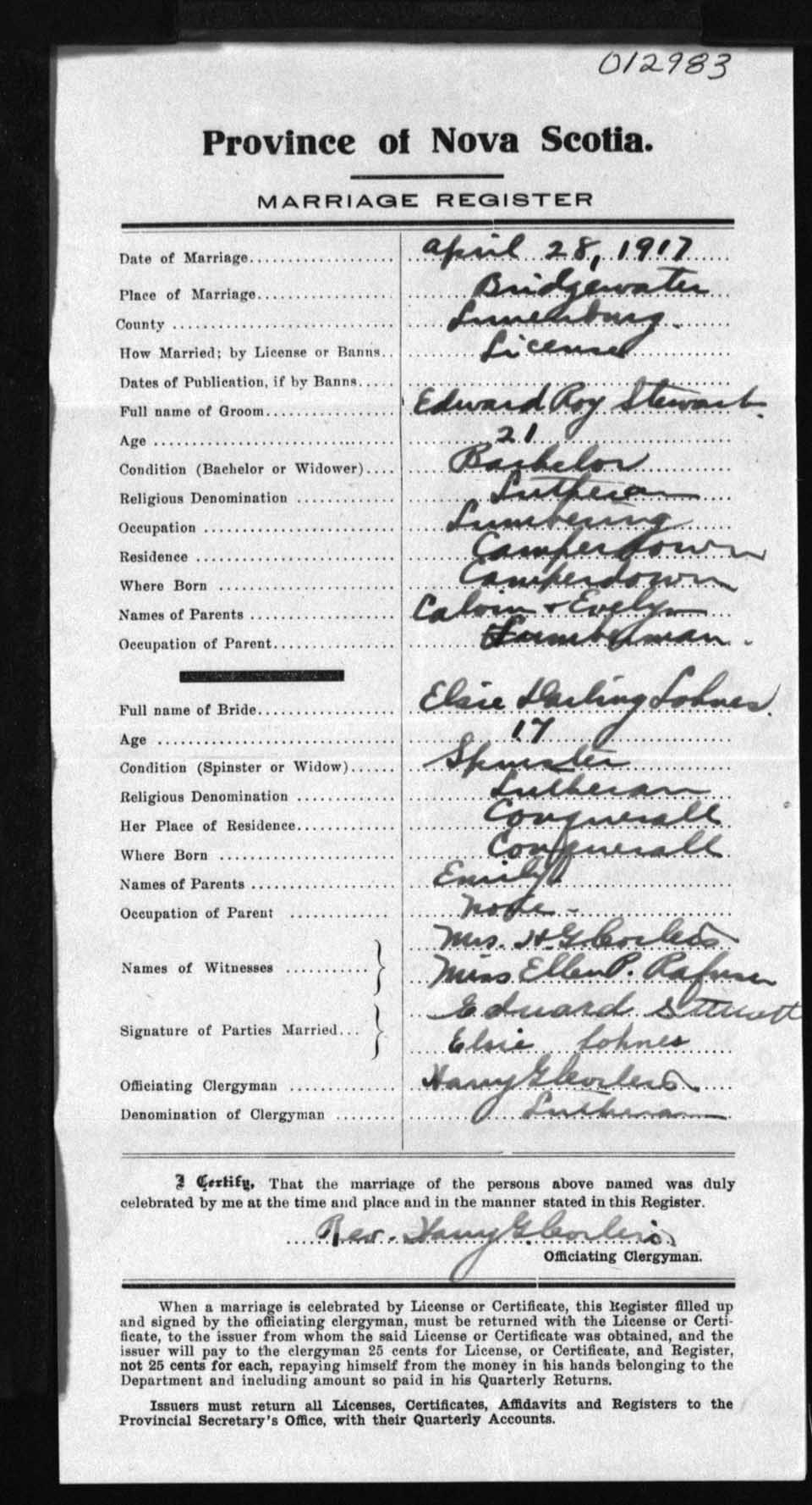 Registration: Year: 1917 number: 12983