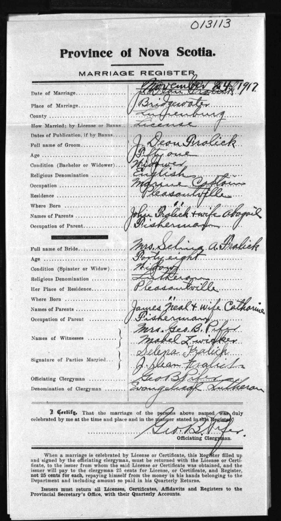 Registration: Year: 1917 number: 13113