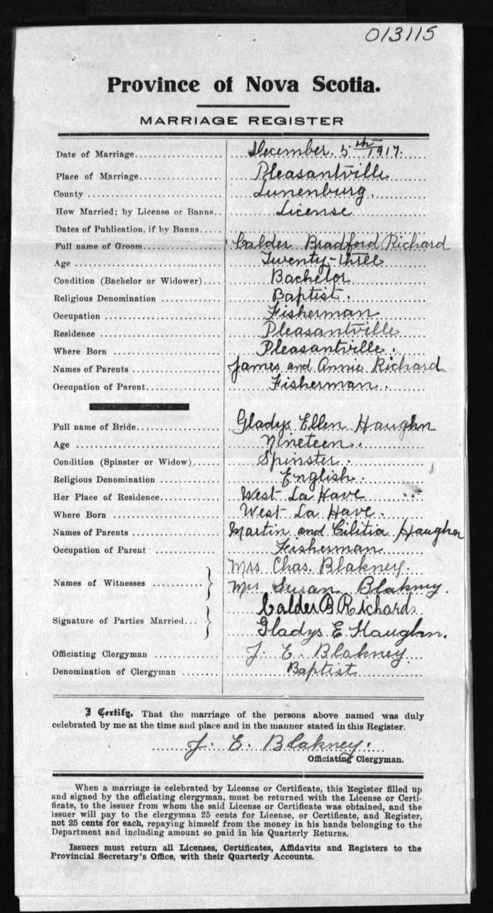 Registration: Year: 1917 number: 13115