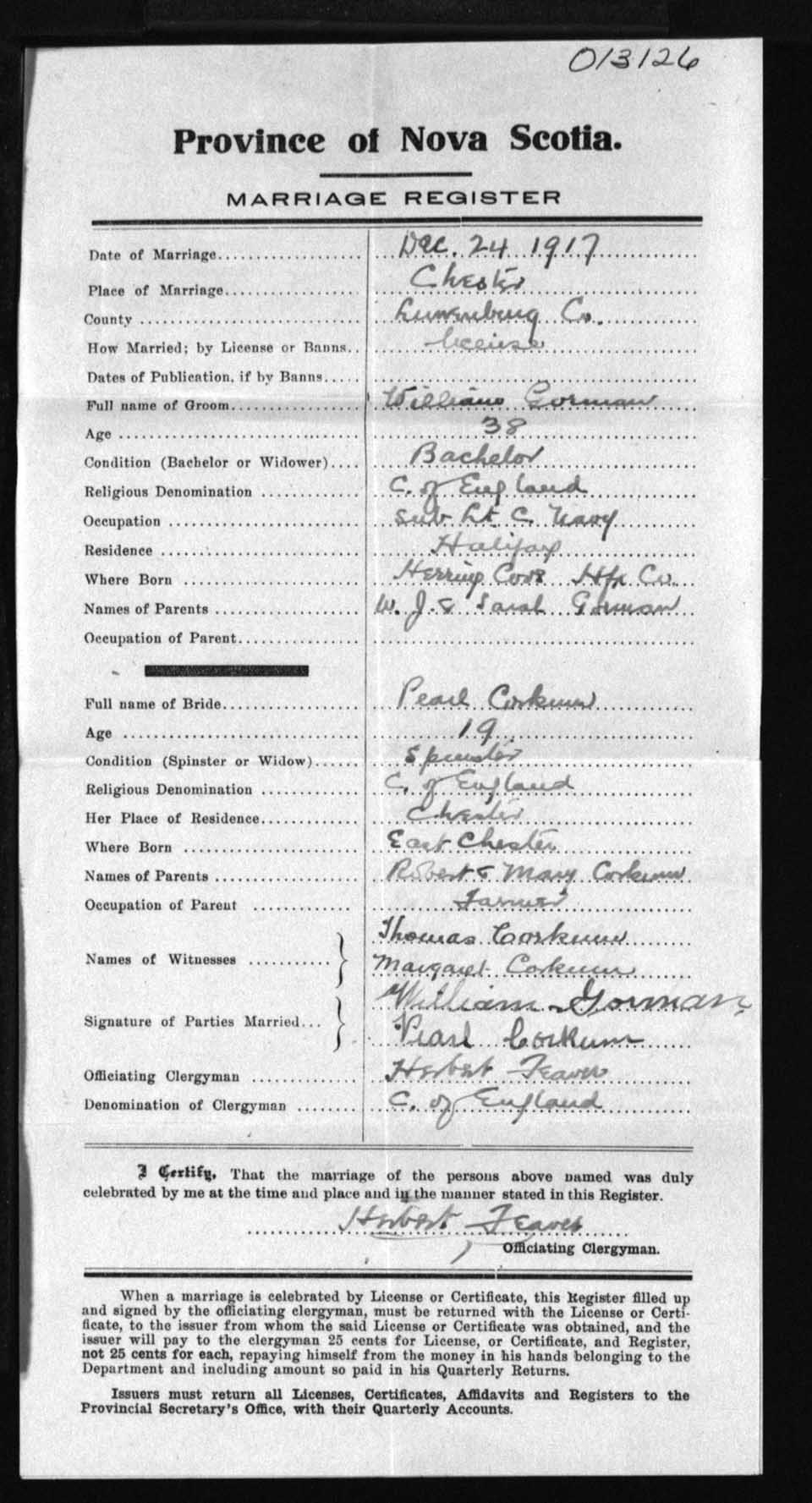 Registration: Year: 1917 number: 13126
