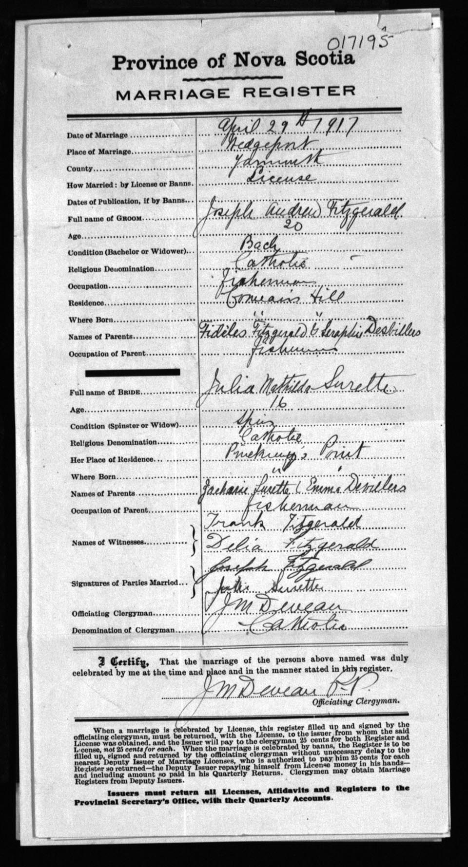 Registration: Year: 1917 number: 17195