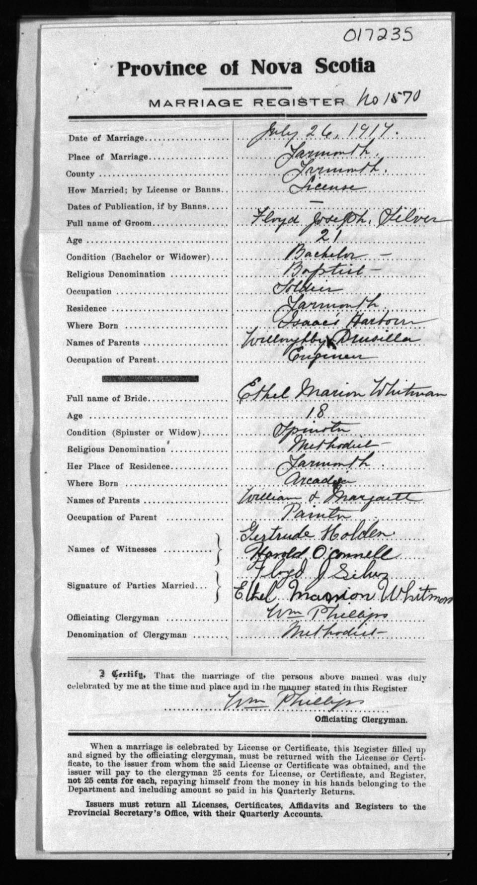 Registration: Year: 1917 number: 17235