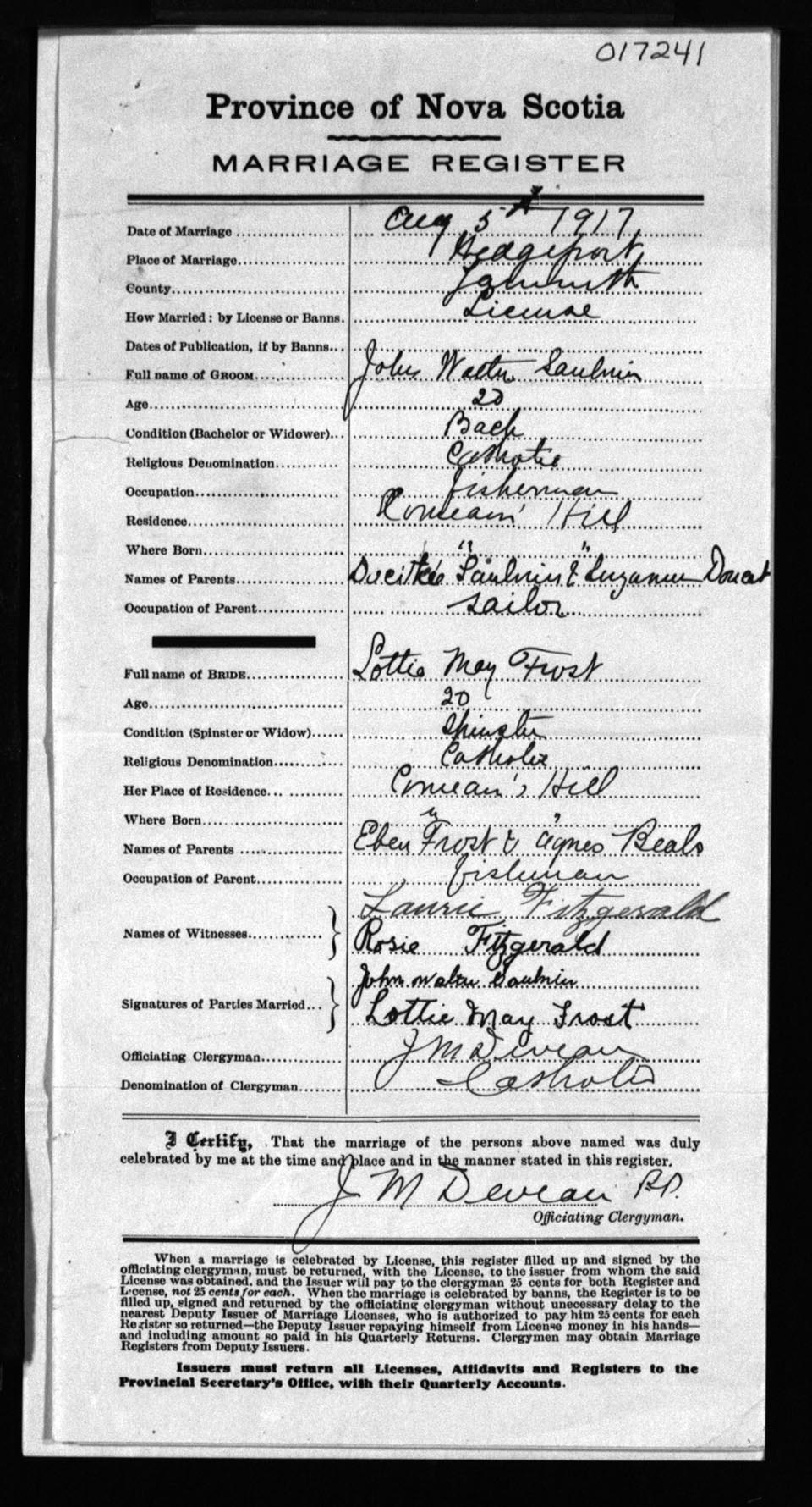 Registration: Year: 1917 number: 17241