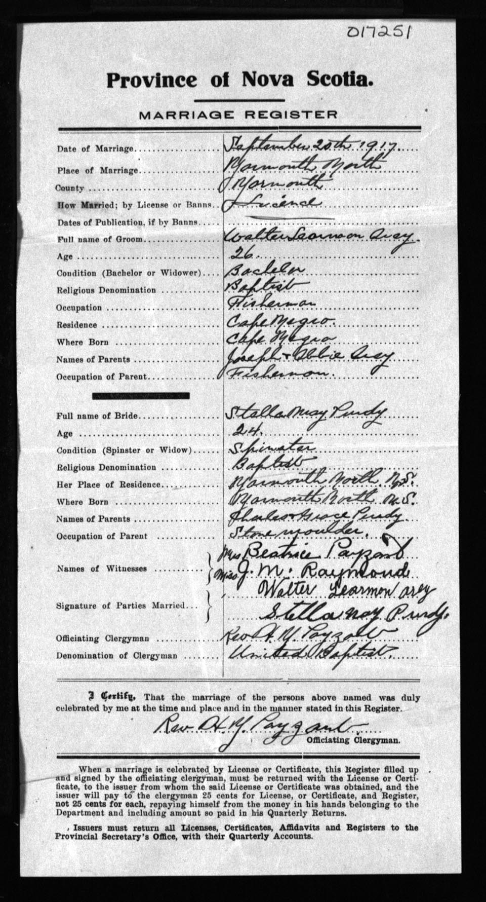 Registration: Year: 1917 number: 17251