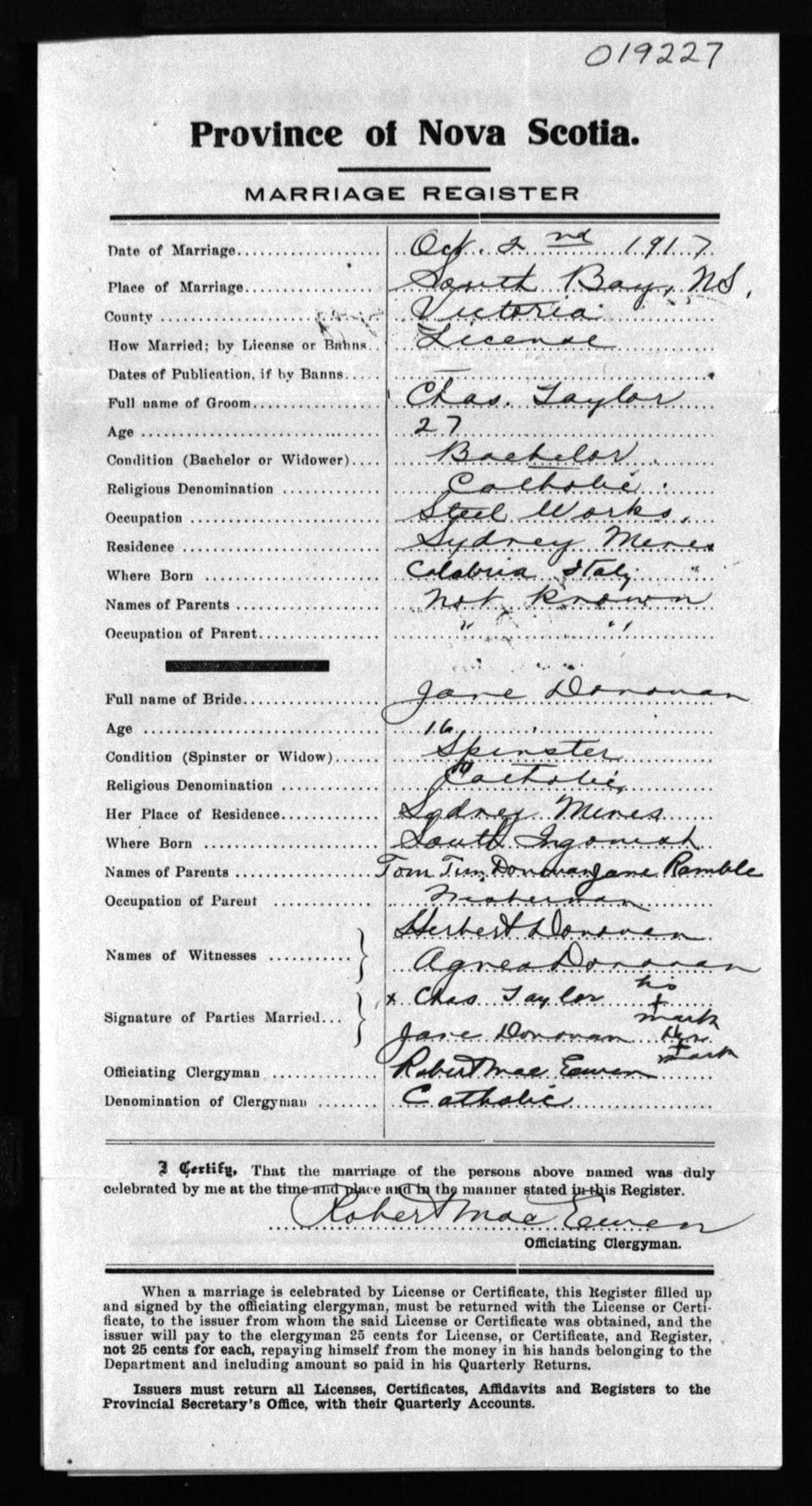 Registration: Year: 1917 number: 19227