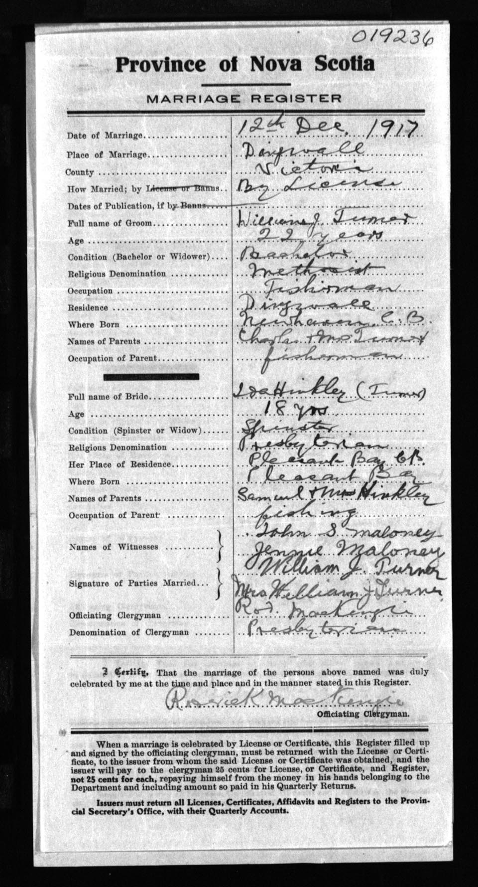 Registration: Year: 1917 number: 19236